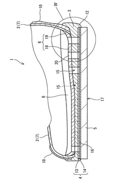 【図2】図2は、図1の履き物のソール部を示す断面図である。