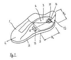 図1は、公知の方法で靴甲部1及び靴底2から実質的に成る運動靴を示す。靴には、縦軸Lがある。
