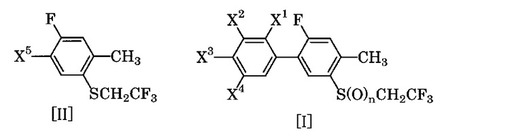 【解決手段】下記一般式[II](式中、X5は−B(OH)2、ハロゲン原子等を表す)で表されるフェニルスルフィド化合物。及び、該フェニルスルフィド化合物を製造中間体として使用する、下記一般式[I](nは0又は1を、X1は水素原子又はハロゲン原子を、X2はハロゲン原子を、X3はハロゲン原子、ジフルオロメチル基又はジフルオロメトキシ基、X4は水素原子、ハロゲン原子を示しを示す。)で表されるビフェニルスルフィド化合物の製造方法。