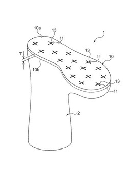 【解決手段】基板1の表面1aから突出し、且つ表面1aに沿って複数それぞれが規則的に配列される接地ブロック2が、中央幅が括れて両端幅が太い鼓形に形成される接地面2aと、接地面2aの対向する一対の長辺に、該長辺の中間部位同士が最も接近して曲がるように形成される凹状エッジ2bと、凹状エッジ2bから基板1に向け凹状エッジ2bに沿って曲がるように連続形成される凹状側面2cを有することにより、歩行に伴い各接地ブロック2の接地面2aが接地した際に、各接地ブロック2の接地面2aと床面などの間に挟まった油膜などを凹状エッジ2bが切って、凹状エッジ2bから凹状側面2cへスムーズに排除し、床面などに対して凹状側面2cが引っ掛かると同時に、各接地ブロック2に掛かった体重が凹状側面2cに沿って基板1の表面1aへ分散されるため、各接地ブロック2の倒れ変形が抑えられて床面などを捉え続ける。