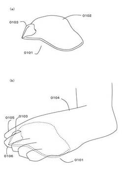 【解決手段】足裏の少なくとも一部と接するベース0102と、足の親指と人差し指との間に挟んで利用可能な突起0103と、を有するインソール0101であって、前記突起0103をベースと略平行な断面で観察した主な形状は、足の左右方向長が、足の踵側とつま先側とを結ぶ縦方向長よりも短い、縦長であって、かつ、足のつま先側に向けて細くなる滴形の形状であることを特徴とするインソール0101を提案する。
