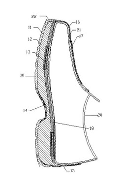 Aiはインサイドゾーンに存在し爪先側内角が90°以上である突起のこの爪先側内角の平均値であり、Acはセンターゾーンに存在し爪先側内角が90°以上である突起のこの爪先側内角の平均値であり、Aoはアウトサイドゾーンに存在し爪先側内角が90°以上である突起の爪先側内角の平均値であり、Biはインサイドゾーンに存在し踵側内角が90°以上である突起のこの踵側内角の平均値であり、Bcはセンターゾーンに存在し踵側内角が90°以上である突起のこの踵側内角の平均値であり、Boはアウトサイドゾーンに存在し踵側内角が90°以上である突起のこの踵側内角の平均値である。