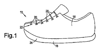 【解決手段】 地面に接する接地面9から、足裏に接する足裏接触面1までの間に所定の厚さを保持した靴において、上記足裏接触面1には足裏に押し圧刺激を付与する弾性突出部2〜6を隆起させる一方、上記接地面9と弾性突出部2,4,6との間に、接地面9に作用した接地圧力を弾性突出部2,4,6に伝達する押し部材8を設ける。また、接地面9と弾性突出部3,5との間に弾性部材11を設け、接地面9に作用した接地圧力を吸収するとともに、当該弾性部材11の弾性力を足裏に作用させる構造にしている。